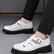 夏季透气镂空乐福鞋男凉鞋英伦风圆头系带单