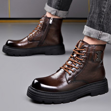 男鞋户外工装鞋大头皮靴秋冬高帮真皮牛皮面